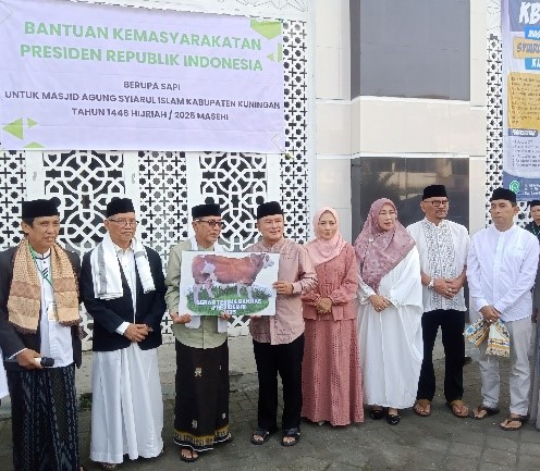 Dalam momentum Hari Raya Iduladha 1446 Hijriah, Pemeribtah Kabupaten Kuningan melaksanakan serah terima Sapi Kurban Bantuan Kemasyarakatan Presiden Republik Indonesia. Serah terima sapi kurban dilaksanakan secara simbolis di pelataran Masjid Agung Syiarul Islam, Jumat (06 Juni 2025), dan berlangsung khidmat serta penuh makna.